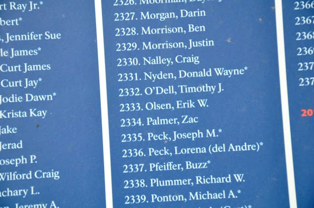 Our oldest son Erik joined the Army National Guard (to complete Army Boot Camp/Training) when a junior in high school and served in the guard for several years while in high school and college. He got permission from the head of the Pacific Fleet to transfer to the United States Navy but had to start over and complete Navy Boot Camp/Training. He completed nuclear navy training and was assigned to the Fast Attack Submarine USS Pittsburgh where he served for 6 years. He is the only person we know that has served in both the United States Army and the United States Navy. We found his name which is pictured below (#2333). Erik saw action in the Persian Gulf during the Kosovo conflict and is officially a Veteran of a Foreign War.