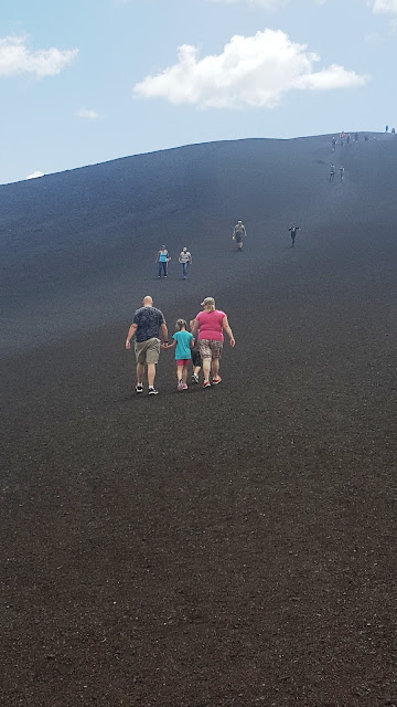 The hike to the top of the Inferno Cone is 0.25 miles long. In that distance you climb 164 vertical feet. Tracy and I decided we didn't need to see the view from 164 feet higher than the view from the parking lot. The Inferno Cone was formed by cinders spewed from the erupting lava (maybe from the Spatter Cones) piling up into the 164 foot mound.